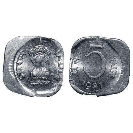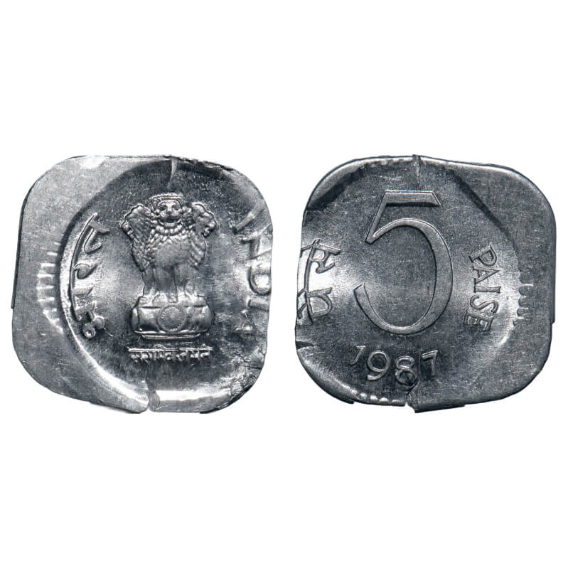 5 Paisa, 1987, Aluminium, 0.97g, Calcutta Mint, 10% misaligned die. Uncirculated, Scarce.