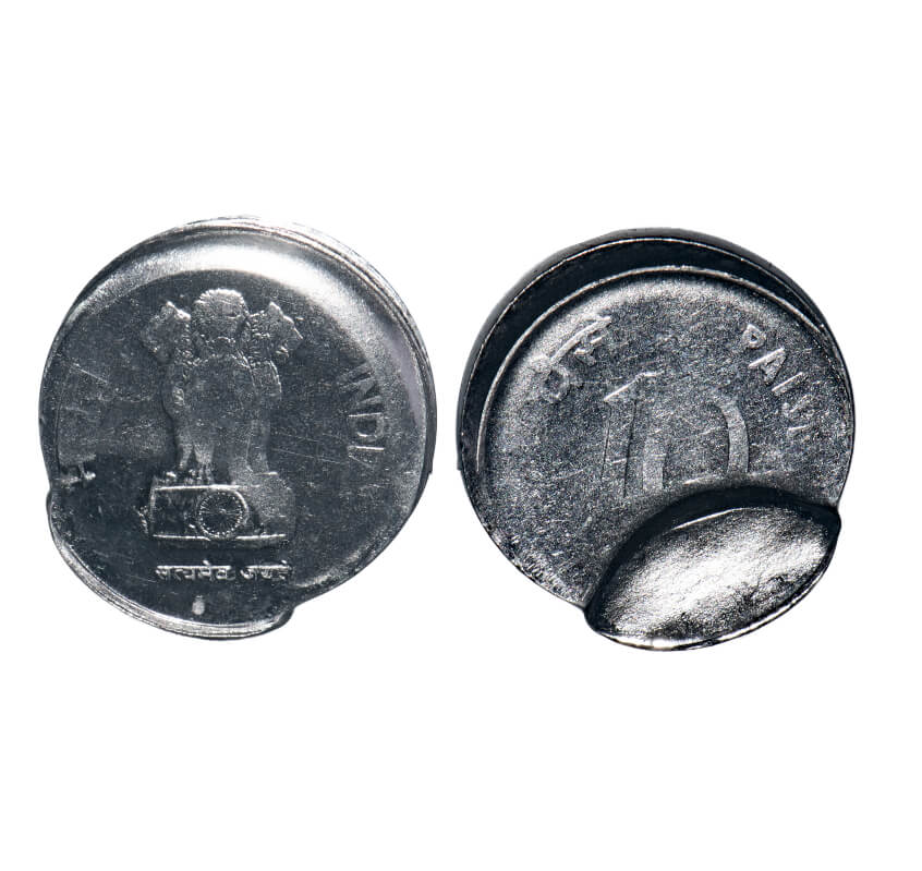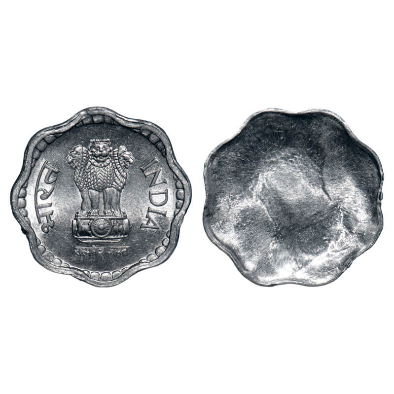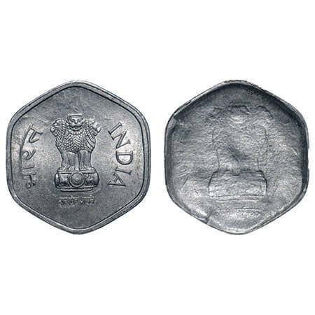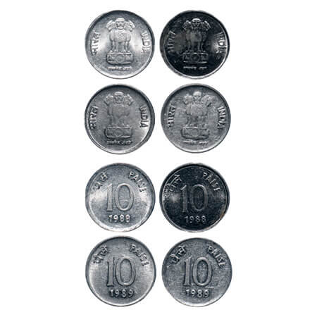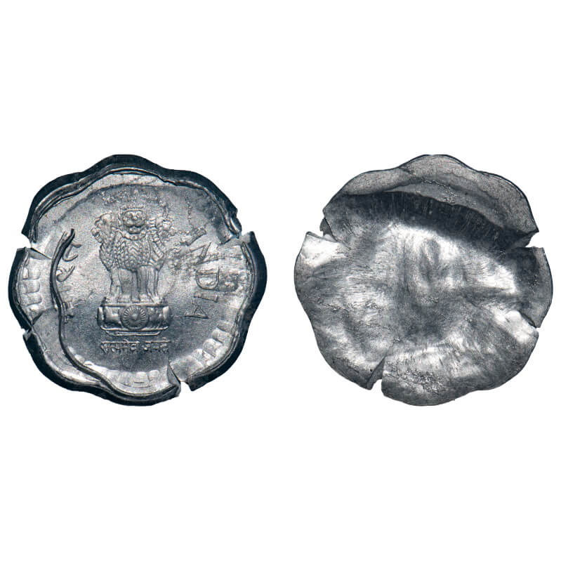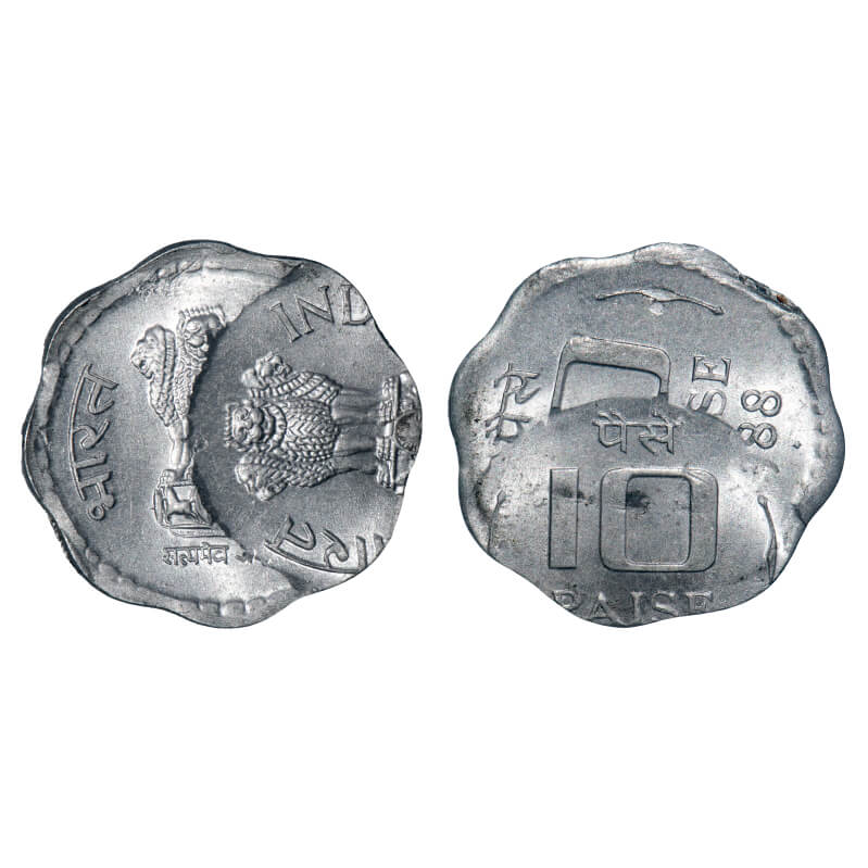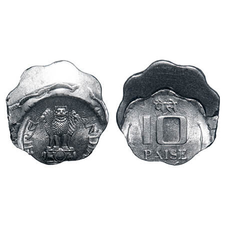 10 Paisa, 1988, Aluminium, 1.66g, Bombay Mint, Error-double struck on both sides. Uncirculated, Scarce.