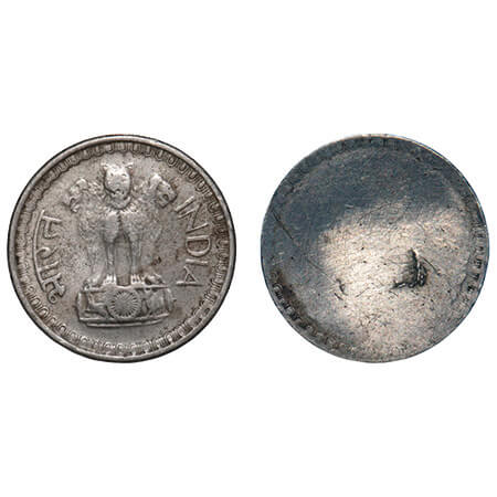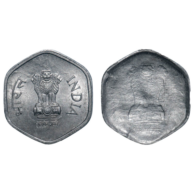 50 Paisa, (1964-1983), Cu-Ni, Error: obverse uniface. Very Fine, Very Scarce.