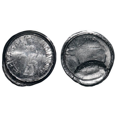 25 Paisa, 2002, FSS, 2.85g, Indent and broad struck error. Uncirculated, Scarce.