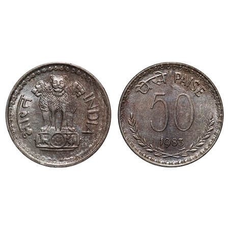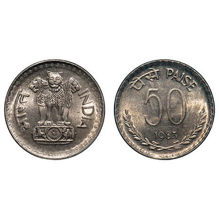 50 Paisa. 1983, Cu-Ni, Calcutta Mint. Uncirculated, Rare.