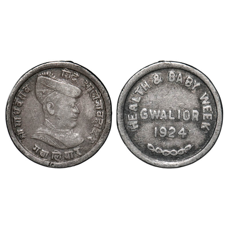 Gwalior State, Health and Baby Week Medal, Silver, 4.90g, Obv: bust of Madhavrao Shinde, Rev: Health and Baby Week, Gwalior 1924. Very Fine+, Unpublished, Very Rare.