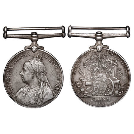 Victoria Queen, China War Medal, Silver, 34.92g, Obv: Jubilee bust of Queen Victoria, Rev: trophy of arms, with China 1900 written below, Awarded to (Unreadable). MYB 158. Very Fine+, Scarce.