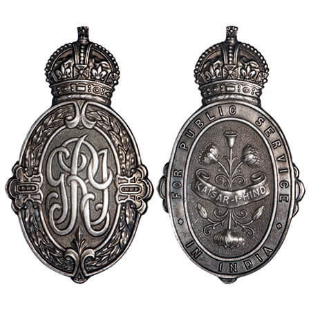 George V, Kaiser-i-Hind Medal, Silver, 26.41g, Obv: an oval badge surmounted by the imperial crown, the royal cypher set within a wreath, Rev: For Public Service in India around the edge, Kaisar-I-Hind (Emperor of India) on a scroll across the center against a floral background, 2nd Class, without ribbon and brooch bar.The medals were originally large but were changed to a smaller size during the reign of George V. (MYB 38). Toned Extremely Fine, Rare.