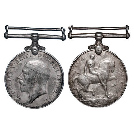 George V, Silver, 33.65g, British War Medal, 1914 - 18, Obv: bust of the Emperor, Rev : a soldier mounted on a horse, awarded to 3992, Sepoy Mula Singh, 1-25, PJBIS. (MYB 168), Toned Very Fine, Scarce.
