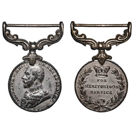 George V, Army Meritorious Service Miniature Medal, Silver, 4.71g, Obv: Bust to left, Rev: For Meritorious Service. Tone Uncirculated, Scarce.