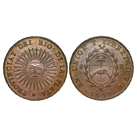 Argentina, Copper Medal, 25.16g, Centennial medal, 100th year of anniversary of argentina 1813 (1813-1913), Centenario Primera Moneda Patria, Obv: sunface, Provincias Del Rio De La Plata, Rev date % En Union Y Libertad. Uncirculated, Scarce.