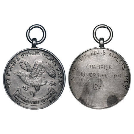 Sports Medal, Silver 18.52g, The Punjab Public School, 1971, 12th Inter House Athletic Meet, Champion Junior Section 1971, Nabha, with eagle motif, onward and Upward. Very Fine+, Scarce.