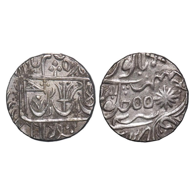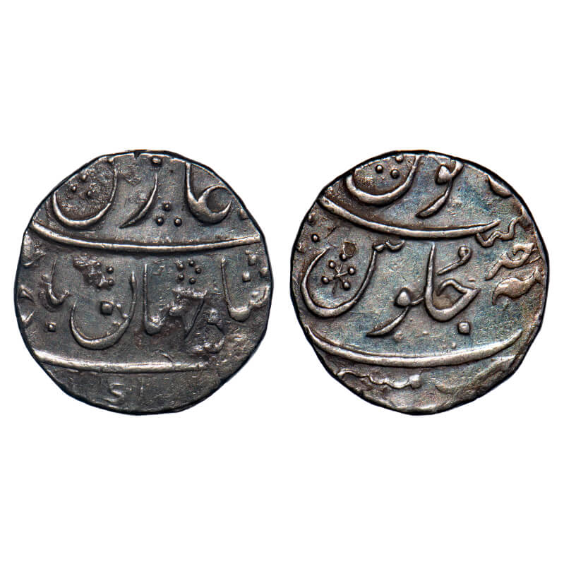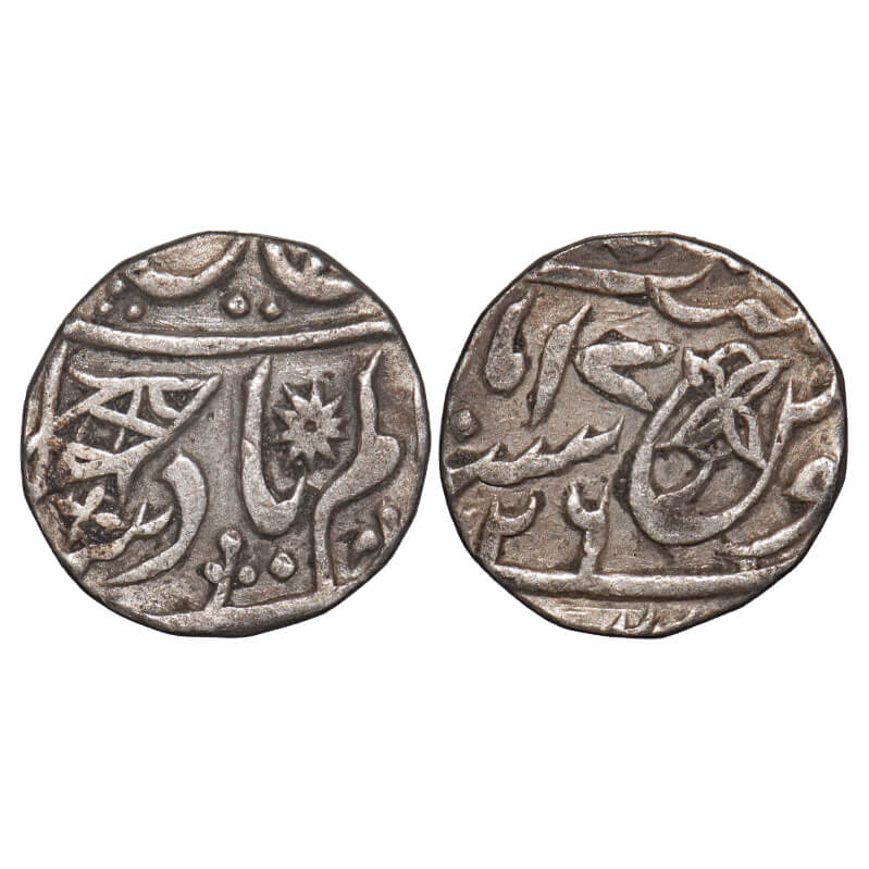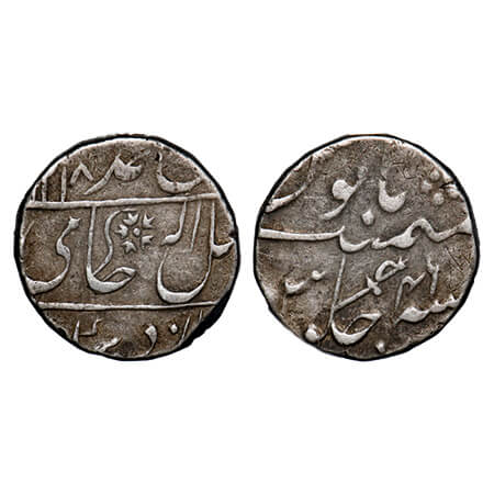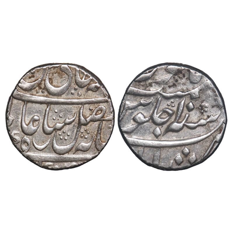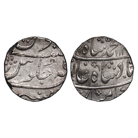 Bombay Presidency, Silver Rupee, 11.55g, Mumbai Mint, INO Muhammad Shah, AH 113x/5 RY. P.Stevens (Page 223) 2.22 unlisted mint mark No 8/F. Prid unlisted. Very Fine+, Rare.