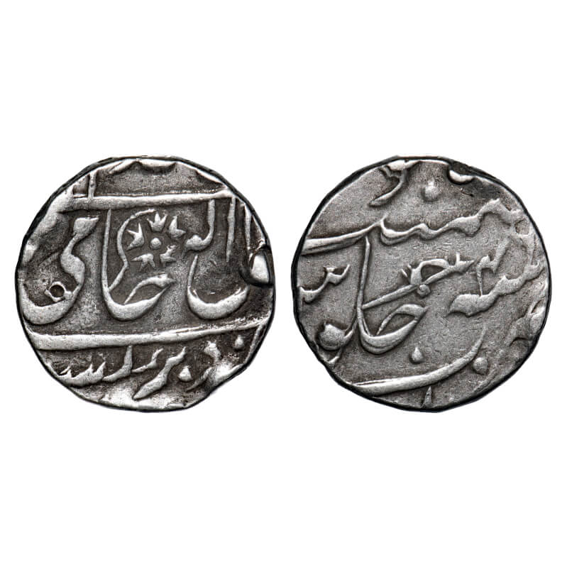 Bengal Presidency, Silver Rupee, 11.07g, Gwalior (Fort) Mint, INO Shah Alam II, AH 1218/46 RY, British straight sword type, shroff marks on edge. P.Stevens (Page 158) 8.123. Very Fine, Rare.