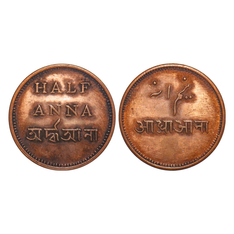 Bengal Presidency, Copper 1/2 Anna / Nim Anna, 11.71g, (1831-1835 AD Isuue) Calcutta Mint. Normal die Axis. P.Stevens (Page 180) 9.28/F.Prid 213. Very Fine, Scarce.