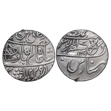 Bengal Presidency, Silver Rupee, 11.30g, (1812-1815 AD Issue), Muhammadabad Banaras Mint, AH 1229 / 17/49 RY, INO Shah Alam II. P. Stevens (Page 108) 7.139/F. Prid 286. Very Fine, Very Scarce.