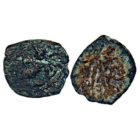 Tomars of Gwalior (c. 14th -15th century AD), Copper, ½ & 1 Tanka (2 coins), 3.21gm, 9.56gm, 17.71x16.69 mm, 11.45x11.89 mm, crude Persian legend on both sides, stylization that of a double falus of the Sayyad rulers of Delhi and Lodhis or the rulers of Jaunpur, Goron and Goenka list these are Miscellaneous coins . About Very Fine, Scarce.