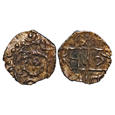 Kalachuris Feudatory of Ratnapur, Jagapala (11-12 Cen AD), Silver Damma, 0.18 gm, 9.10x8.69 mm, Obv: Stylized seated Lakshmi facing front within dotted circle, Rev: Nagari legend in two lines reading ‘Shri Jaga Pala’. Fishman & Todd # A5. About Very Fine, Scarce.