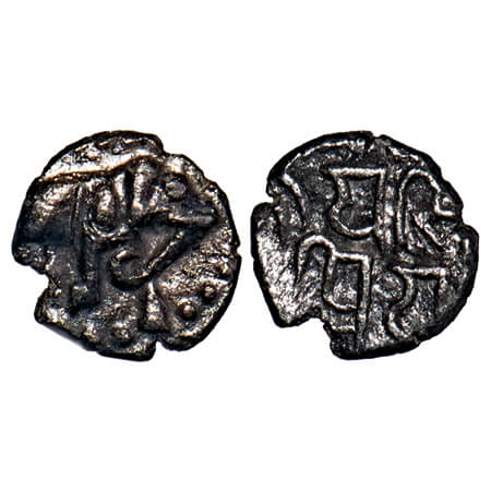 Yadavas of Devagiri, Sri Bhillam and Ram Deva, Silver Unit, (2 Coins), 0.19gm, 0.92gm, 9.00x9.58 mm, 5.98x5.45 mm, Obv: Lion standing facing to left side, Rev: Nagari legend mentioning the ruler name.