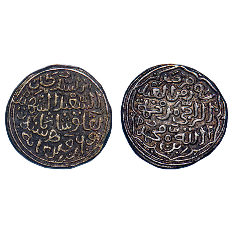 Delhi Sultanate, Billon 12 Gani, 5.23g, Qutb Al Din Mubarak (AH 716-720 / 1316-1320 AD), Obv: al imam al azam qutb al dunya wa l din abul l muzaffar, Rev: khalifat allah mubarak shah in centre, al sultan al wathiq billah amir al mu minin around. AH 719. G&G D270. Very Fine, Scarce.