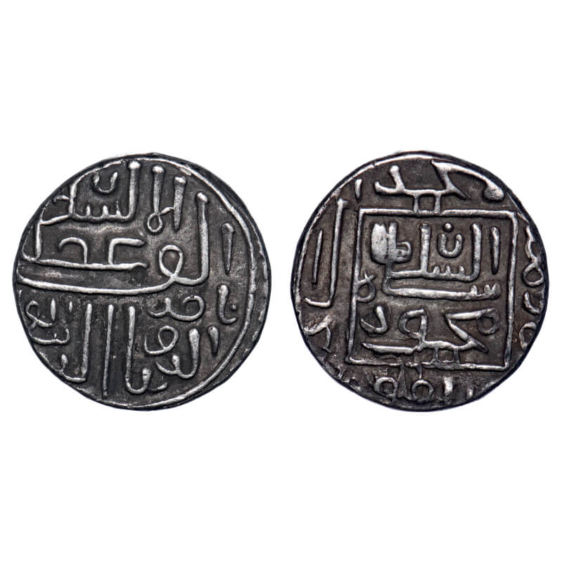 Gujarat Sultanate, Silver Tanka, 11.35g, Nasir Al Din Mahmud Shah I (AH 862/3-917 / 1458-1511 AD), Muhammadabad Mint, Legends within Scalloped circle. al sultan mahmud shah type. G&G G130. Very Fine+, Scarce.