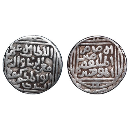 Delhi Sultanate, Silver Tanka, 10.73g, Muizz al Din Kaiqubad (AH 686-689 / 1287-1290 AD), (Hadrat Delhi), Obv: al-Sultan al-a'zam muizz al-dunya wa l'din abu'l muzaffar kaikubad al-sultan, Rev: al-imam legend with caliph al-mustasim. G&G D 178. About Very Fine, Scarce.