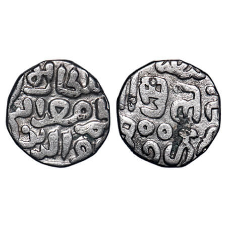 Bahamani Sultanate, Silver 1/6 Tanka, 1.61g, Muhammad Shah I (AH 760-777 / 1359-1375 AD) Obv: binah din illah, Rev: abul muzaffar muhammad shah. G&G BH31. Very Fine+, Very Rare.
