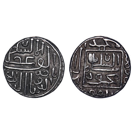 Gujarat Sultanate, Silver Tanka, 10.50g, (96 rati standard), Ghiyath Al Din Ahmad III (AH 961-968 / 1553-1560 AD), Mintless, Al Mutasim type, AH 961, legends in double peaked square on reverse. G&G G513. Very Fine, Scarce.