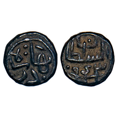 Gujarat Sultanate, Copper Double Falus, 21.50g, (96 Rati standard), Nasir Al Din Mahmud Shah I (AH 862/3-917 / 1458-1511 AD), Obv: al sultan al azam abu al fath nasir al dunya waldin, Rev: mahmud shah al sultan. G&G G156. Fine+, Extremely Rare.