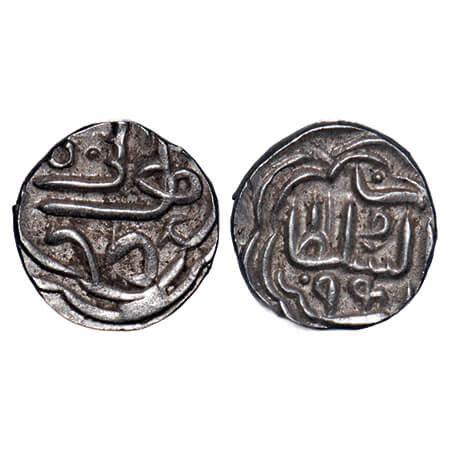 Gujarat Sultanate, Silver 1/6 Tanka, 1.11g, Qutb Al Din Bahadur, Mintless, AH 943, Obv: bahadur shah, Rev: al sultan sanah, legends within circle on both sides. G&G G356. About Extremely Fine, Rare.