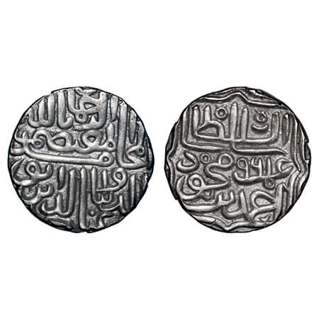 Gujarat Sultanate, Silver Tanka, 10.82g, (96 rati standard), Ghiyath Al Din Ahmad III (AH 961-968 / 1553-1560 AD), Al Mutasim type, AH 961. G&G G513 unlisted type. Extremely Fine, Scarce.