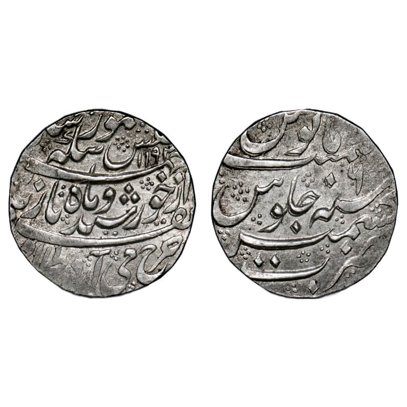 Bangash Nawab Ahmed Khan of Farrukhabad (AH 1164-1185, 1750-1771 AD), Silver Rupee, 11.16g, Ahmednagar Farrukhabad Mint, INO Shah Alam II, AH 1198/24. KM 28. Very Fine, Scarce.