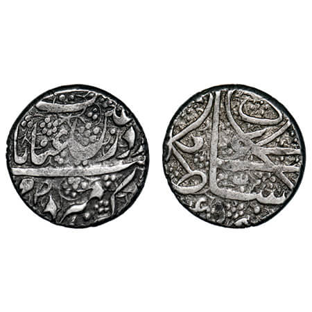 Durranis , Silver Rupee, 11.10g, Taimur Shah Durrani (AH 1186-1207 / 1772-1793 AD), AH 1193 / 6 RY, Kashmir Mint , Complete mint name, many decorative symbols on both sides , "Khursheed-wa-mah" couplet, Obv: Sikka e Taimur Shah Bar Chehre Naqsh Az Khursheed-wa-mah tarand me kharch aarad tilaa-o-nuqrah (The Heaven brings in Gold and Silver from the Sun and the Moon, so that it may receive the impression of the stamp of Taimur Shah) Rev: Sanah 6 Jalus Maimanat Manus Zarb Kashmir [Struck at Kashmir in the Sixth Year of his Reign Associated With Prosperity, No test mark. Note - The coins of first few years of Taimur shah Kashmir relatively difficult to find. KM 563, About Extremely Fine, Scarce.