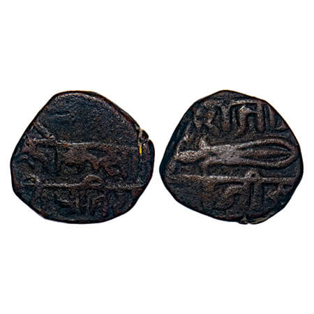 Gond Kingdom of Devgarh, Copper Paisa, 12.27g, (Heavy) Kokashah (1620-1640 AD), double struck, Obv: Sri Raja Jatabaji Suta. Rev: Sri Maharajraja Kokasahi Mahipati Saka. KM unlisted type. Very Fine, Rare.