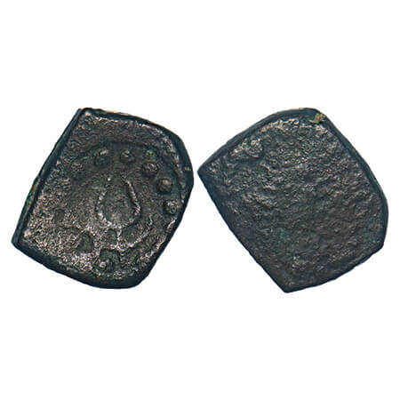 Gond Kingdom of Devagadh, Copper Paisa, 6.48g, Anonymous issue, dotted trident and flower marks, Uniface. Very Fine+, Rare.