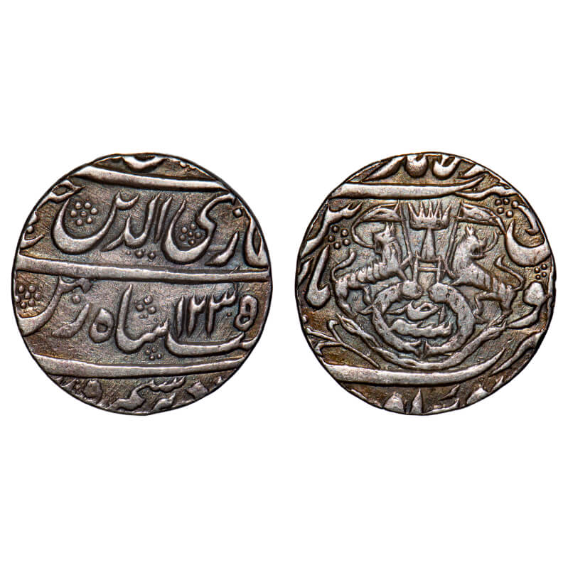 Awadh, Silver Rupee, 11.05g, Ghazi-ud-din Haidar as Nawab, Mint variety II, Dar us Ameerat Suba Awadh, AH 1235/Ahad (1) RY. MKDM 7.22 type. Toned Very Fine+, Scarce.
