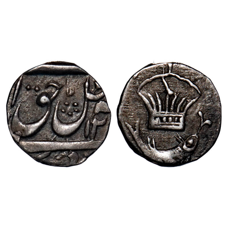 Awadh, Silver 1/8 Rupee, 1.40g, Amjad Ali Shah (AH 1258-1263, 1842-1847 AD), (Mulk Awadh Bait-us-Sultanate Lukhnau), AH 12xx/ RY Unseen. MKDM 9.44 type/KM 330. Toned About Extremely Fine, Rare.