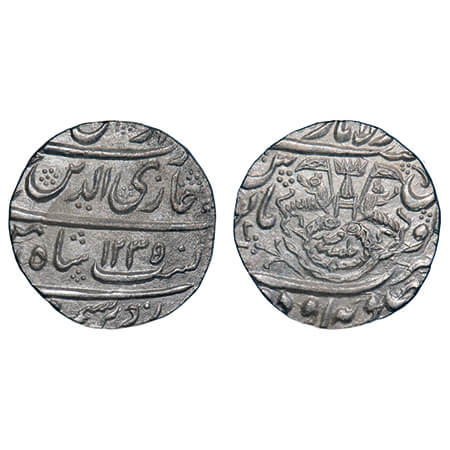 Awadh, Silver Rupee, 11.00g, Ghazi-ud-din Haidar as Nawab, Mint variety II, Dar us Ameerat Suba Awadh, AH 1235/Ahad (1) RY. MKDM 7.22 type. About Very Fine details, Scarce.