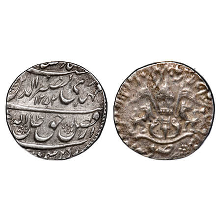 Awadh, Silver Rupee, 10.88g, Nasir ud din Haider (AH 1243-1253, 1827-18327 AD), Suba Awadh at bottom Dar us Sultanat Lukhnau on top, AH (12)47/5 RY. MKDM 8.25 type. About Very Fine, Very Scarce.