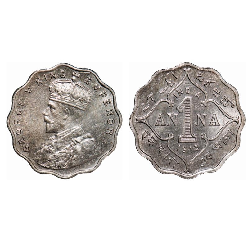 George V, Copper-Nickel, 1 Anna, 1913, Bombay Mint, No dot. GK 1143. Brilliant Uncirculated. Very Scarce.