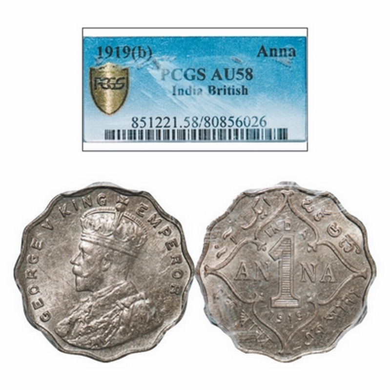 George V, Copper-Nickel, 1 Anna, 1919, Bombay Mint, No dot. GK 1149. PCGS Slabbed AU 58. Scarce.