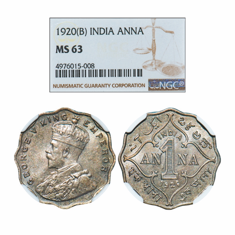 George V, Copper-Nickel, 1 Anna, 1920, Bombay Mint, No dot, GK 1150. NGC Slabbed MS 63. Very Rare.