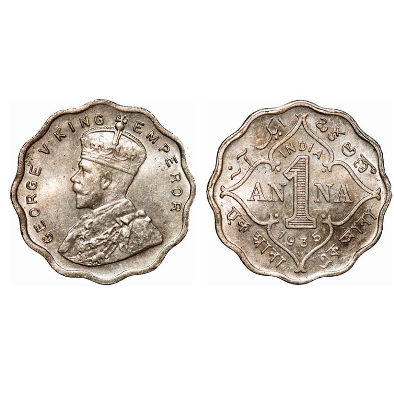 George V, Copper-Nickel, 1 Anna, 1935, Calcutta Mint, No dot, Ghost on Rev. GK 1167. Uncirculated. Scarce.
