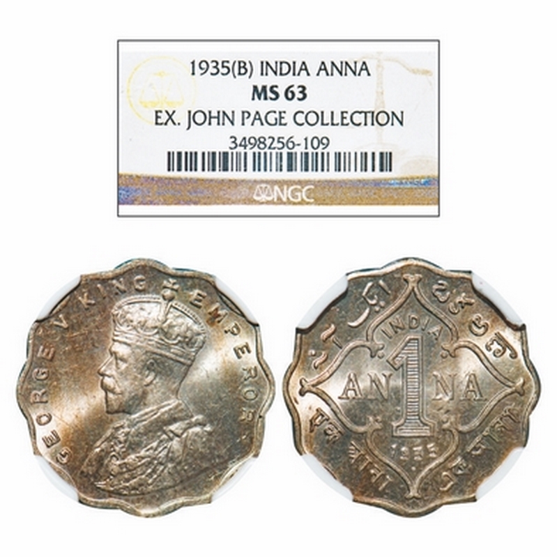 George V, Copper-Nickel, 1 Anna, 1935, Bombay Mint, Dot. Ex John Page Collection. GK 1166. NGC Slabbed MS 63. Very Scarce.