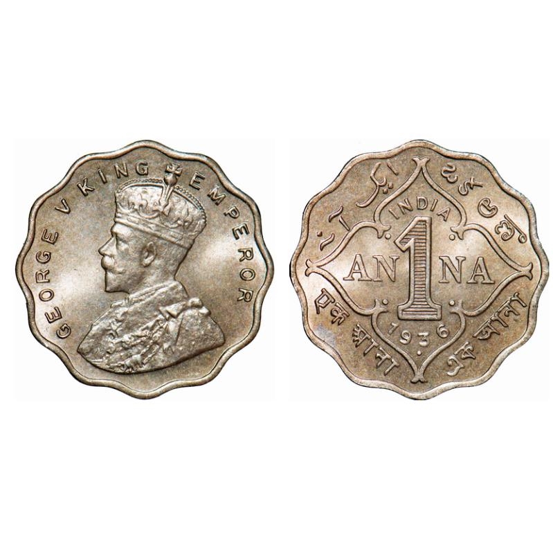 George V, Copper-Nickel, 1 Anna, 1936, Bombay Mint, Dot. GK 1169. Brilliant Uncirculated. Scarce.
