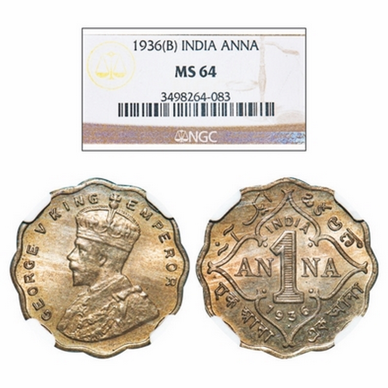 George V, Copper-Nickel, 1 Anna, 1936, Bombay Mint, Dot. GK 1169. NGC Slabbed MS 64. Very Scarce.