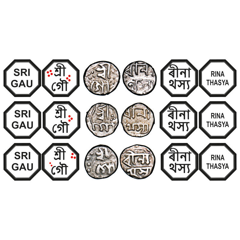 | Assam, Octagonal/circular Silver 1/32 Rupee (3 Coins), 0.30g, Gaurinatha Simha (1780-95), undated, Assamese legends in two lines, Obv: Sri/ Gau, Rev: Rina/ thasya. Reverse die perfectly struck at 6 o'clock. (A.Mitra 435 types. RB. R132 types). Very Fine, Very Scarce. |