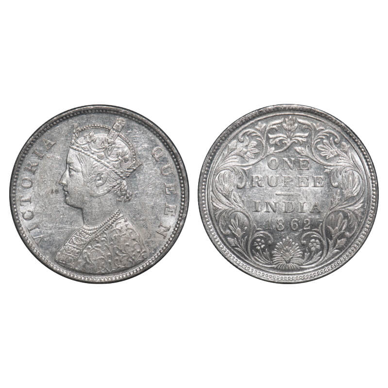 Victoria Queen, Silver, Rupee, 1862, Bombay Mint, B/II(ii), With Pineapple like buds at 4 different places, 3 Pineapple buds above 'O' & 'E' of One, 1 Pineapple bud above 2nd 'E' of Rupee, but the flower above 'E' of One is normal size. F. Prid Unlisted. GK 272. Uncirculated, with original mint luster. Rare. |