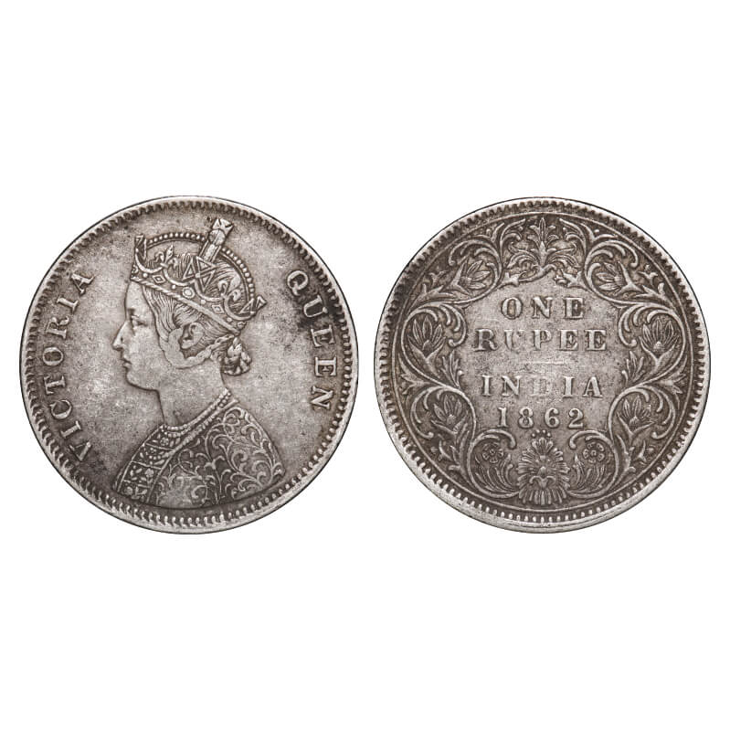 Victoria Queen, Silver, Rupee, 1862, Bombay Mint, A/I/0/4, w/o initial J. F. Prid 78. GK 305. Extremely Fine. Very Scarce.