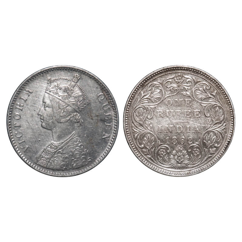 Victoria Queen, Silver, Rupee, 1862, Bombay Mint, A/II/0/10, Flat shoulder, w/o initial 'J'. F. Prid Unlisted. GK 338A. Extremely Fine. Rare.