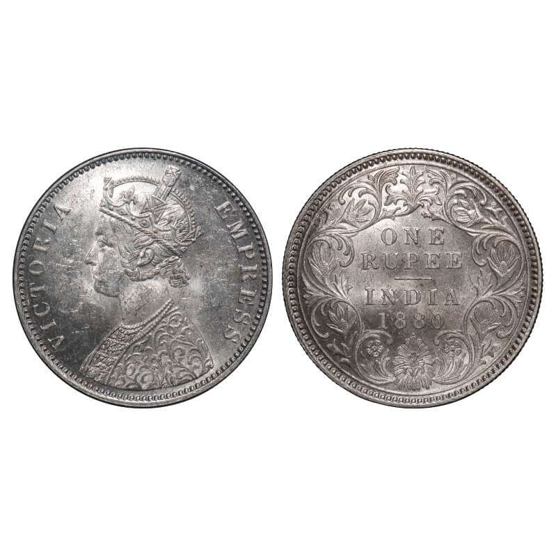 Victoria Empress, Silver, Rupee, 1880, Bombay Mint, A3/I, Dot. F. Prid 156. GK 466. Uncirculated, Tone. Rare.