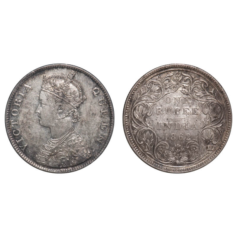 Victoria Queen, Silver, Rupee, 1862, Madras Mint, B/II. F. Prid 57. GK 266. NGC Slabbed MS 62. Very...