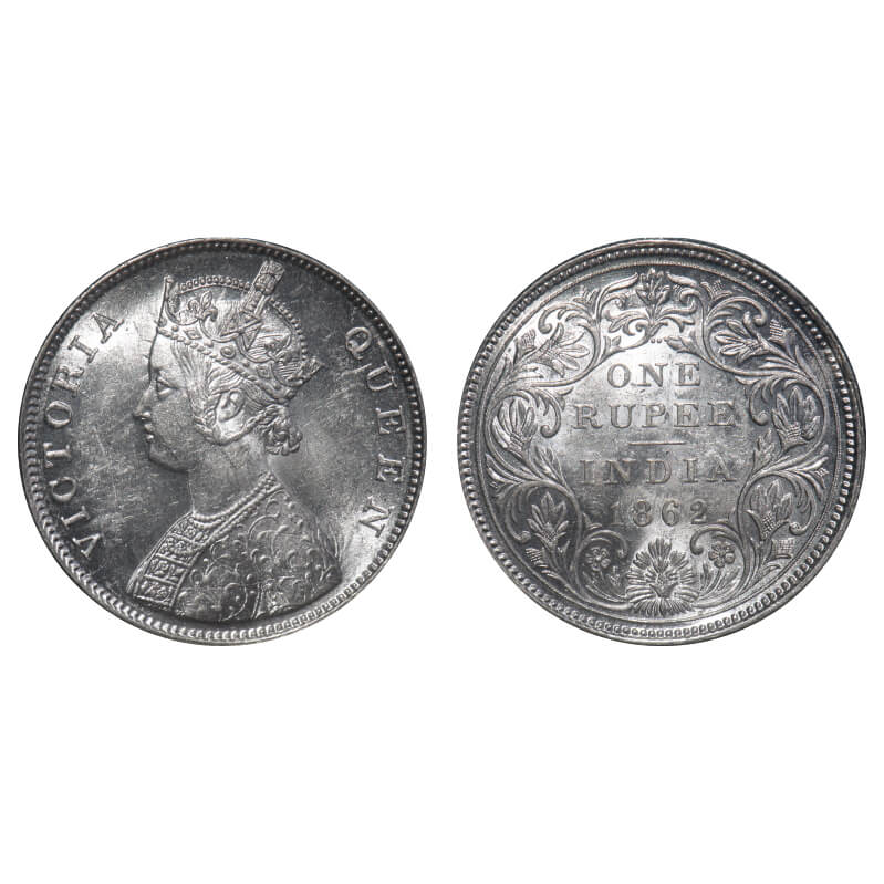 Victoria Queen, Silver, Rupee, 1862, Bombay Mint, B/II/2/0. F. Prid 71. GK 287. Brilliant Uncirculated. Very Scarce.