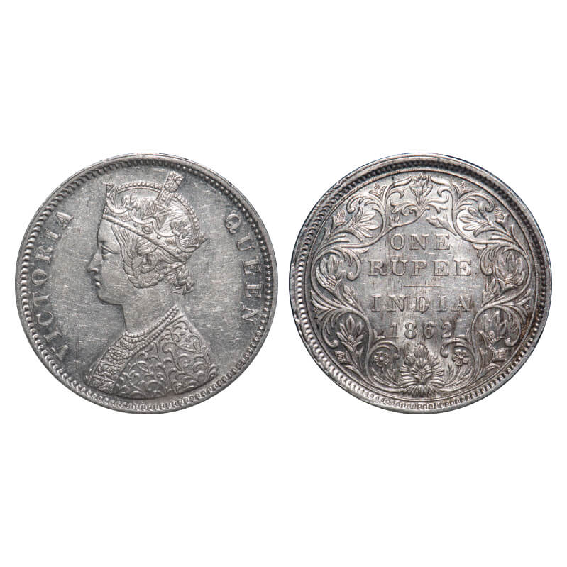 Victoria Queen, Silver, Rupee, 1862, Bombay Mint, A/II/0/6, w/o bottom stroke of numeral 1, w/o ini...